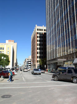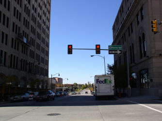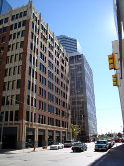 view to the west from the intersection Harvey Ave. and Dean A. Mc Gee Ave., OG&E Building on the left |