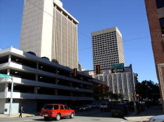 view to the north, Park Harvey Center (front to the right) and Court Plaza (right) |