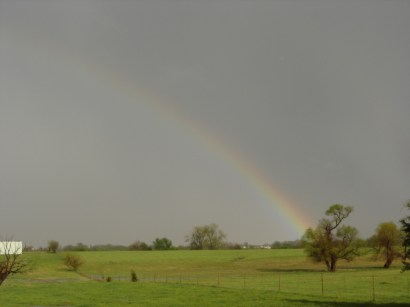 What was most amazing was the slow 15 to 20 mph speed the squall line was progressing at. It dropped impressive amounts of rain during its 20 minute lifespan over locations. We headed back south and took some photos of the flooding at the same church we had been at earlier. A few remaining hailstones from the potent updraft can still be seen in the first two photos. From here we headed back north on Highway 69 and took the obligatory rainbow shot with the advancing squall line in the background.