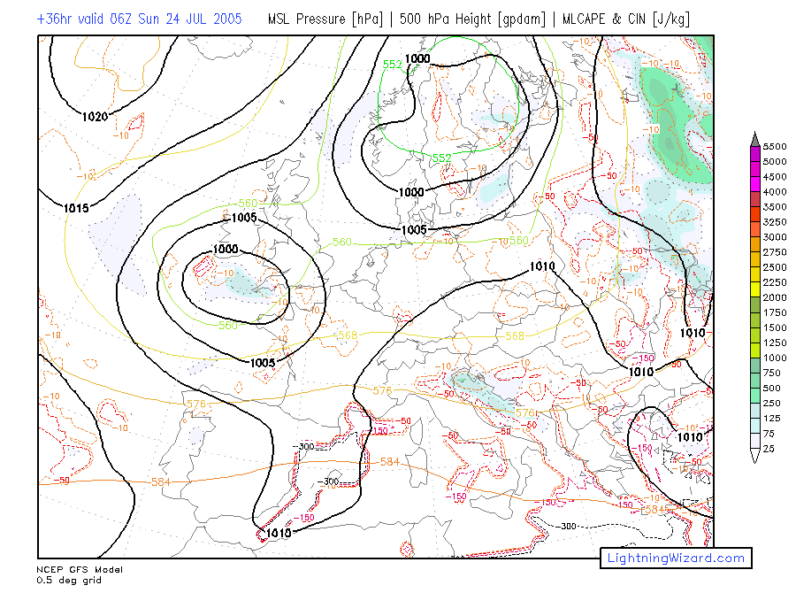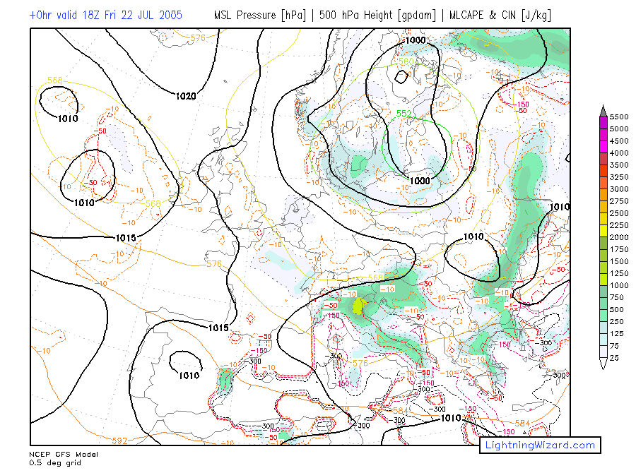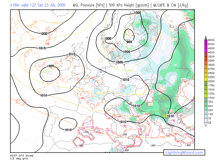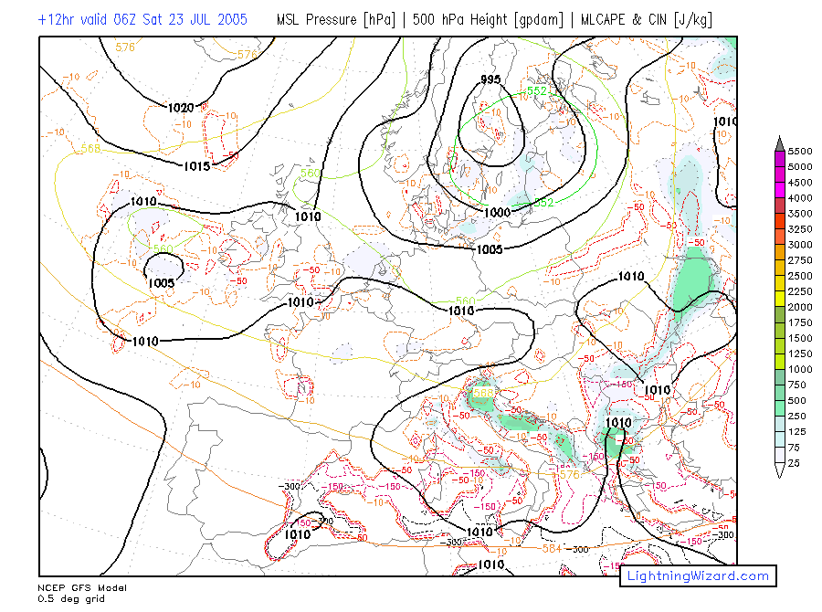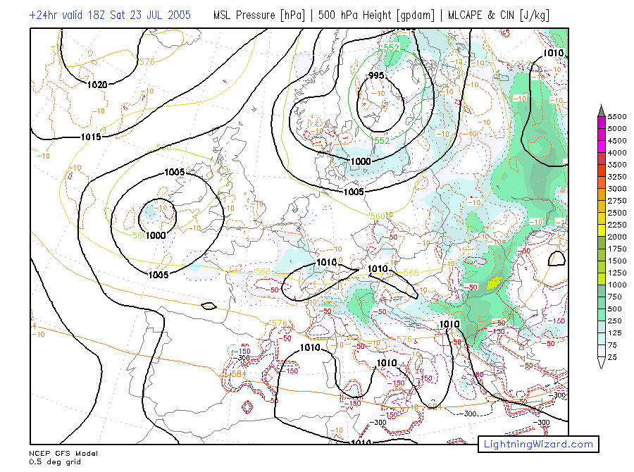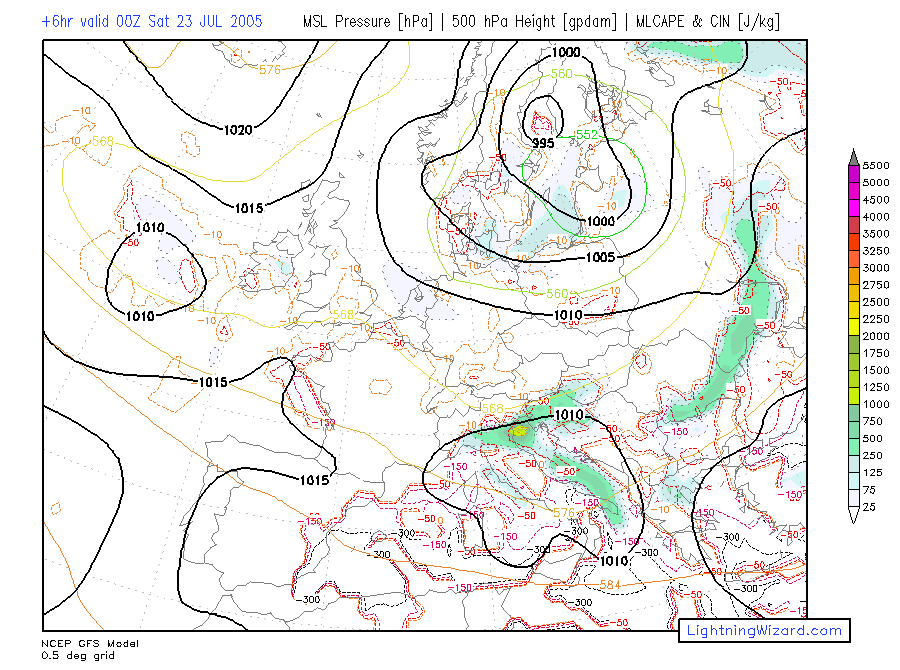 | MSL Pressure, Height 500, 0-1 km parcel MLCAPE, CIN |
