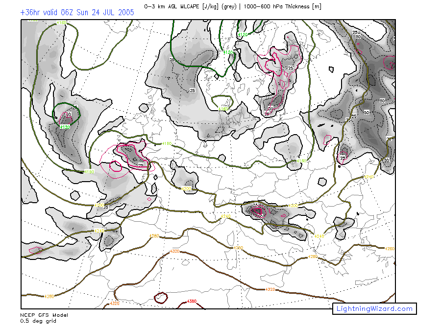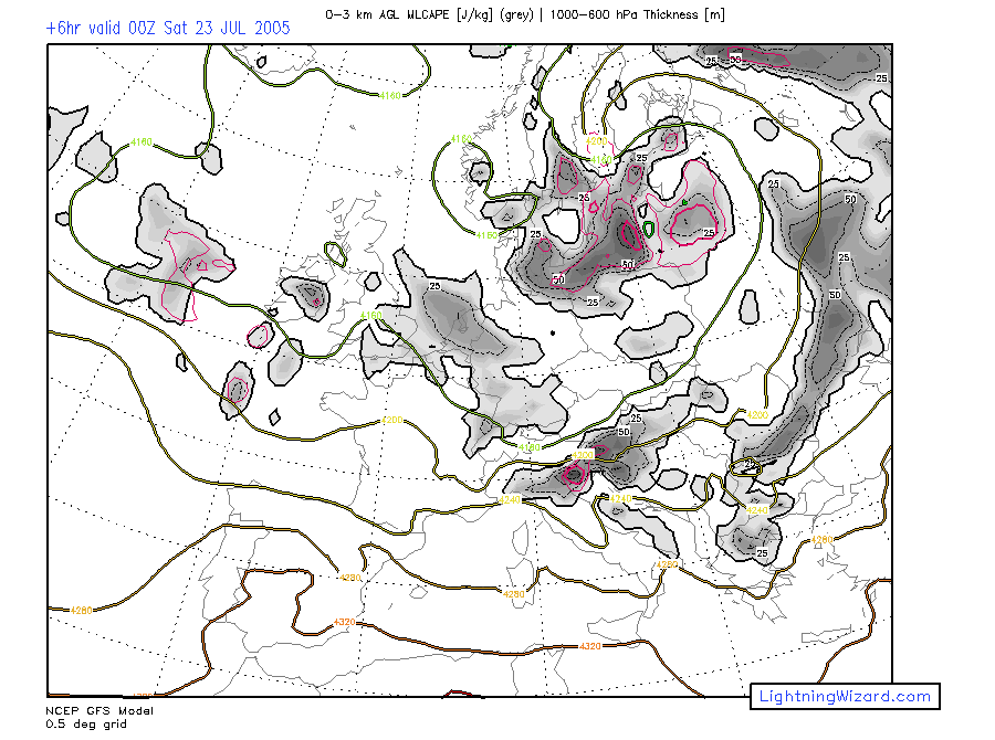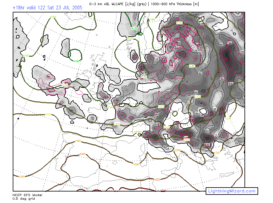 | (exp.) Spout Potential: 0-3 km MLCAPE, 0-1 km Lapse Rate |