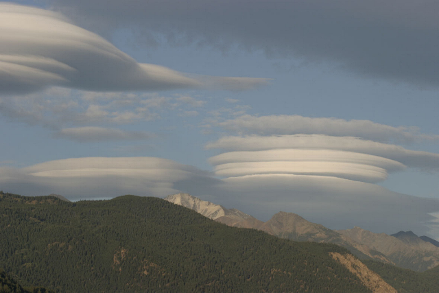 Stratocumulus (Sc) The last variation on stratus clouds is the stratocumulus cloud. Occurring below 2000 meters, these clouds resemble little rows of cotton balls. The coloring of these clouds can vary from gray to white depending on the sunlight angle. Precipitation is rare from this cloud; however, in the winter, if the top cools enough, some showers may occur as the clouds develop vertically. Latin Derivatives: stratus - "layer" and cumulus - "heap" |