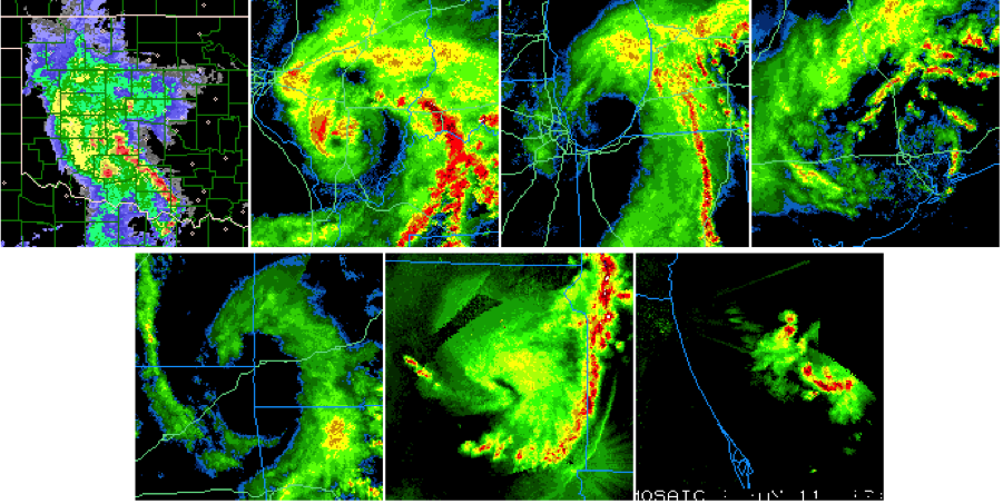 Image 4: Selected MCV cases, (from top left, clockwise) May 8-9, 2007, Oklahoma; May 8, 2009, Upper Mississippi Valley; June 2, 2010, Iowa, Illinois, Michigan; June 3, 2010, Texas; June 7, 2010, Kansas, Missouri; May 9, 2011, North Dakota, Minnesota; June 1, 2011, Florida